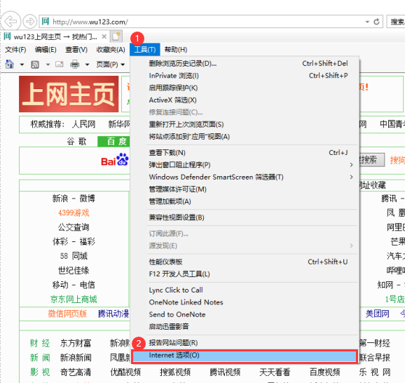按照如下方式操作:1、打开IE浏览器,点击工具 - Internet选项,如图所示: |