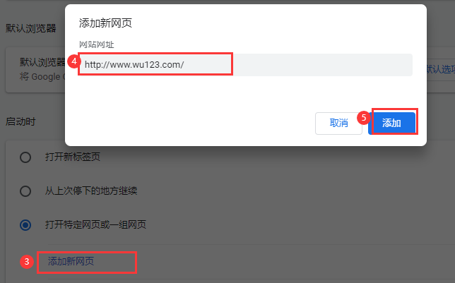 选择主页,在自定义网站里输入http://www.wu123.com/,确定即可。 |