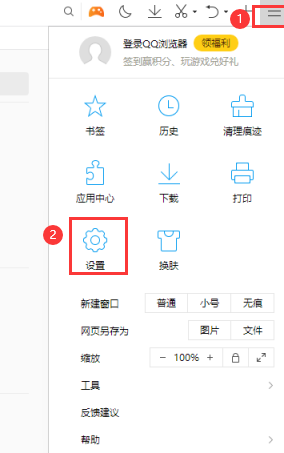 打开QQ浏览器,点击菜单-设置,如图所示: |