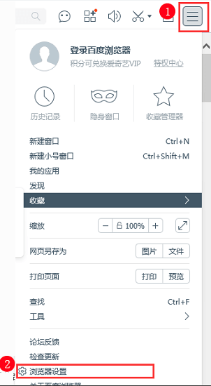 打开百度浏览器,菜单-浏览器设置,如图所示: |