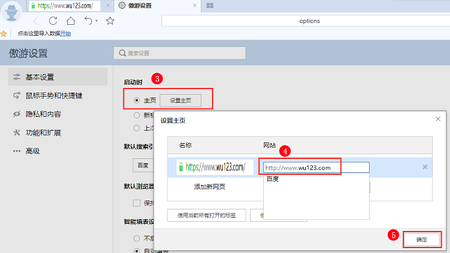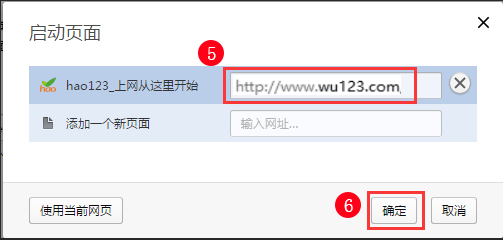 设置网页,输入http://www.wu123.com/,确定即可。 |