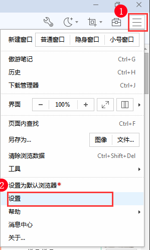 打开傲游浏览器,点击菜单—设置,如图所示: |