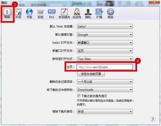 2、选择常规选项,在地址栏里输入http://www.wu123.com/ |